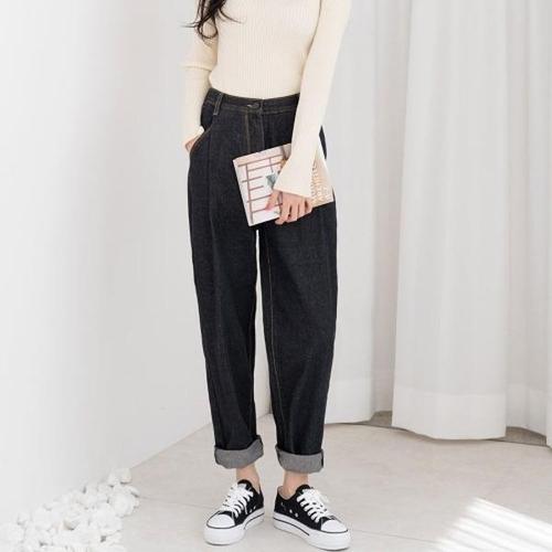 [엄지척]배기 여자청바지 바라클라바 중청 오버핏 청바지 핀턱_19943754_667501