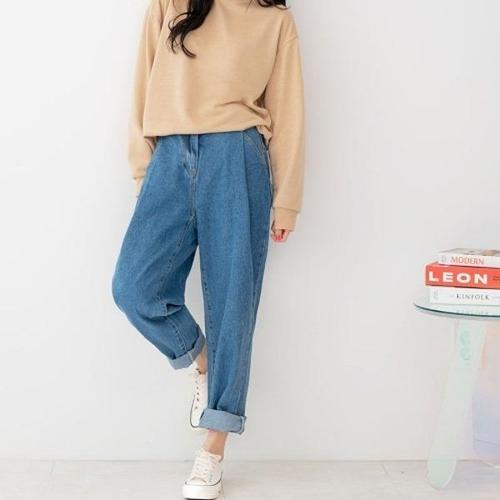[엄지척]여자 중청 핀턱 오버핏 뒷밴딩 배기 데님 롤업 청바지_19943437_667501