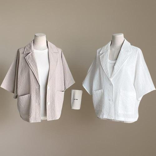 [보니제이]텍스처 여성 반팔 자켓 오버핏 자켓 카라 썸머 포켓