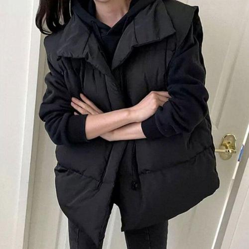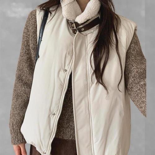 [옷자락]여성 버클 더플 카라 루즈핏 패딩 조끼