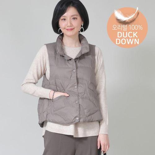 [애비뉴투지]엄마옷 스탠카라 오리털 루즈핏 누빔 스냅 봄 가을 숏 경량 패딩 조끼 V10366