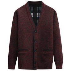 ROYALBELLE 남성 브이넥 두꺼운 니트 가디건 루즈핏 따뜻한 기모 데일리 버튼 카디건 F0100606