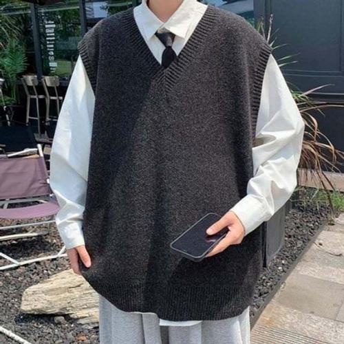 가을 캐주얼 남자 니트 브이넥 민소매 풀오버 조끼 연간 루즈핏 CH3