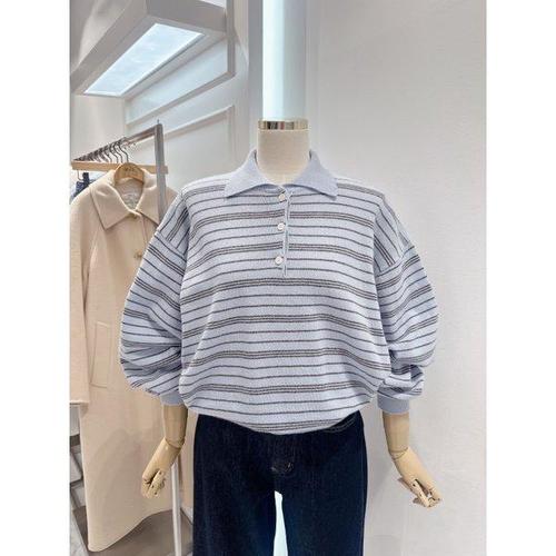 엘케이트 여성 니트 카라 반팔티셔츠 루즈핏 단가라 줄무늬 여름 티셔츠 LCR115
