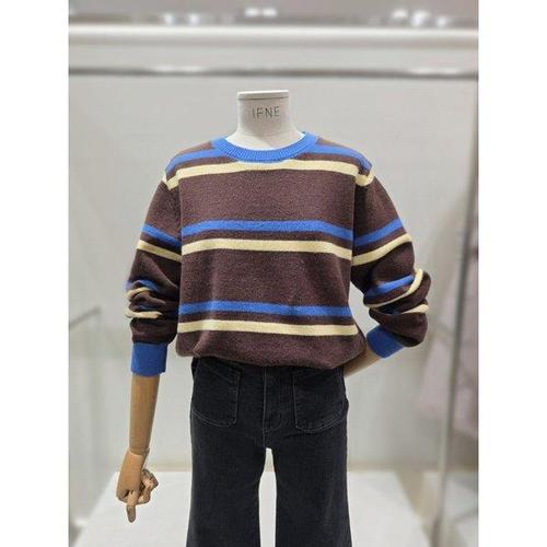 [잇수다] 하몬디 스트라이프 배색 루즈핏 라운드 니트