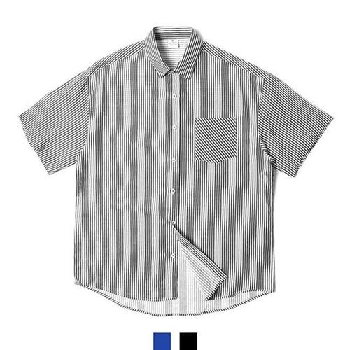 KING 잔스트라이프 린넨 루즈핏 반팔셔츠 WFKLBUZ
