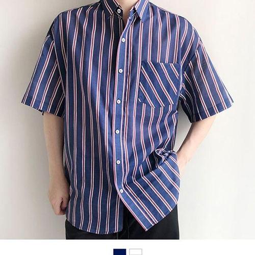 KING 스트라이프 루즈핏 린넨 반팔셔츠 WFKLBV1