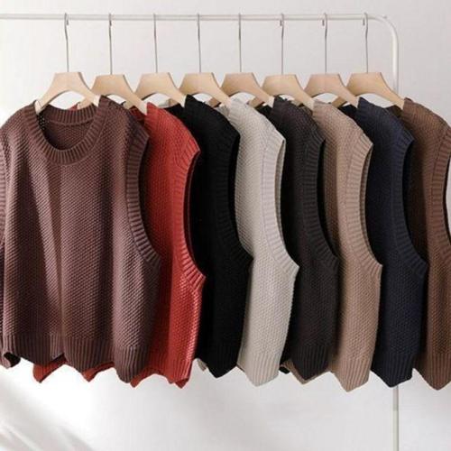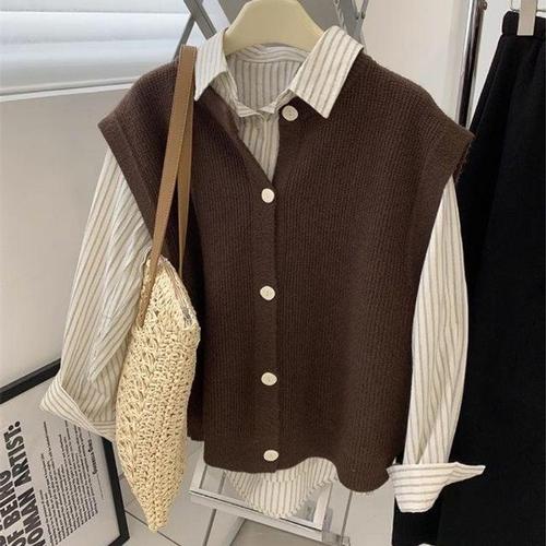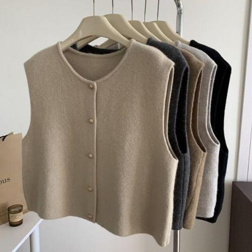 레이어드 니트 여성 조끼 루즈핏 단추 라운드넥 WFLMXWY