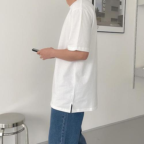 [히코튼][자체제작]프리미엄 코튼 레이어드 트임 오버핏 반팔