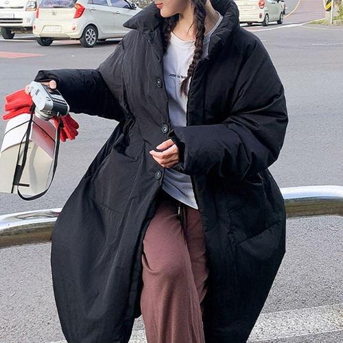 [블랙퀸] 피체니 떡볶이단추 루즈핏 롱패딩 blk004243