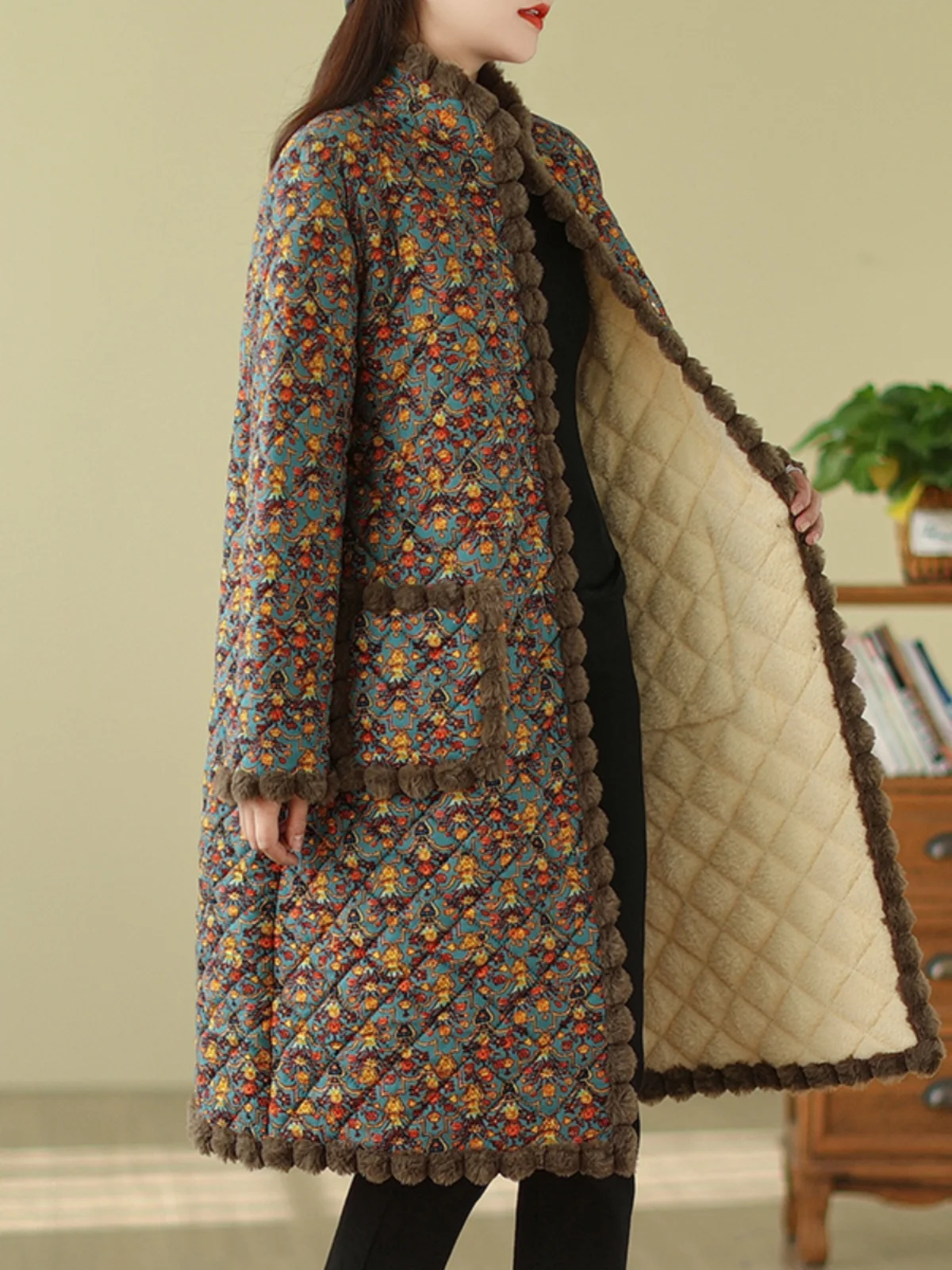 플러스 사이즈 플리스 안감 중간 길이 재킷 여성용 따뜻한 레트로 스타일 출퇴근용 긴 소매 외투 가을 겨울 루즈핏