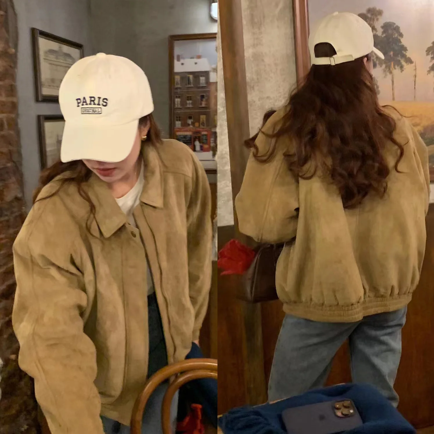 레트로 브라운 가죽 재킷 루즈핏 스타일리시 모터사이클 코트 가을 신상 여성용 숏 아우터웨어 폴리에스터 섬유