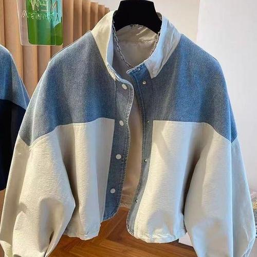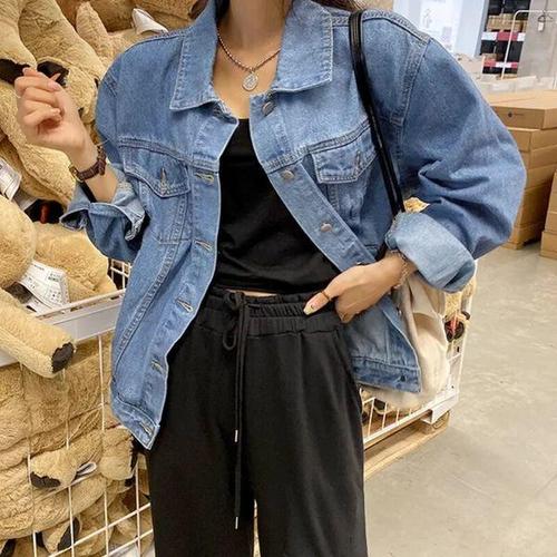 지디오 여성 오버핏 청자켓 긴팔 카라 데님 재킷 레트로 캐주얼 아우터