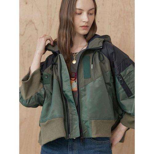 [마쟈]컬러 블록 루즈핏 후드 크롭 점퍼