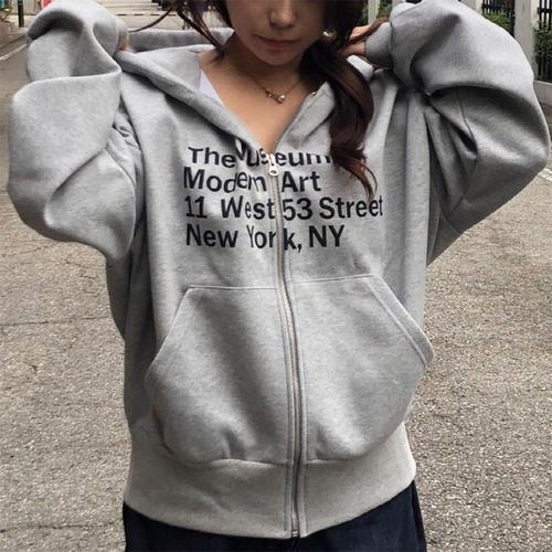 [옷자락]여자 Y2K 레터링 오버핏 캥거루 코튼 데일리 후드집업