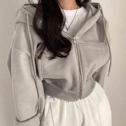 [셀러허브_여성트랜드패션]여자 포근 기장 후드집업 루즈핏 크롭 피치기모