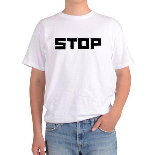[에이치플러스몰]반팔 라운드티 stop 영어단어 멈춰 스탑