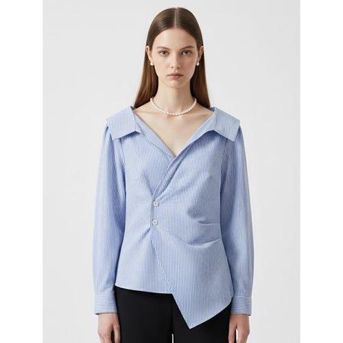 [BNX]스트라이프 오프숄더 케이프 긴팔 셔츠 (BY1BL007L0)
