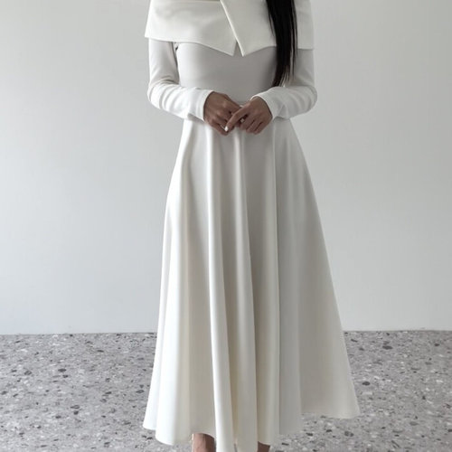 구디프 보트넥 원숄더오프 셔링 롱 원피스