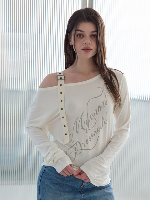 [오오엠엘] 스트랩 오프숄더 롱슬리브 (아이보리)