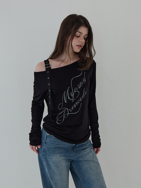 [오오엠엘] 스트랩 오프숄더 롱슬리브 (블랙)