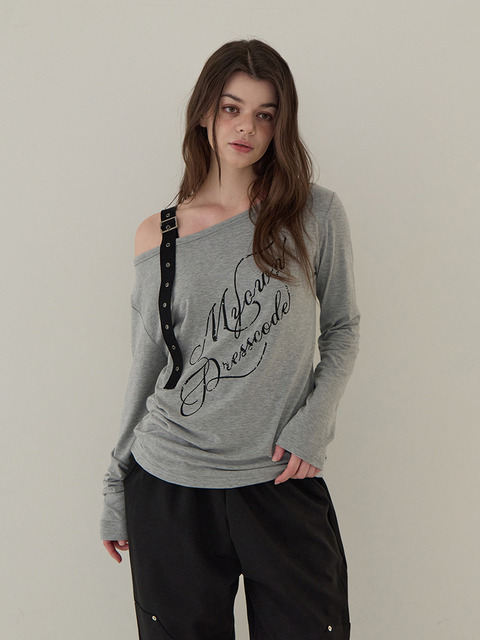 [오오엠엘] 스트랩 오프숄더 롱슬리브 (멜란지 그레이)