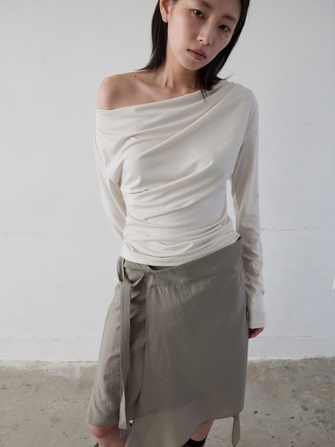 [옷자락]여자 크로스 오프숄더 셔링 슬림핏 롱슬리브 티셔츠