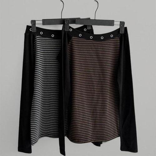 [신상오픈런]여자 오프숄더 끈 아일렛 단가라 배색 롱슬리브 티셔츠