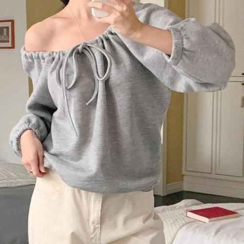 [하프클럽/]여성 기모 오프숄더 리본 퍼프 맨투맨 오버사이즈