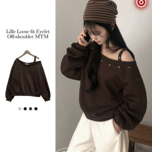 더핑크 / 써클 슬릿 아일렛 오프숄더 기모 맨투맨