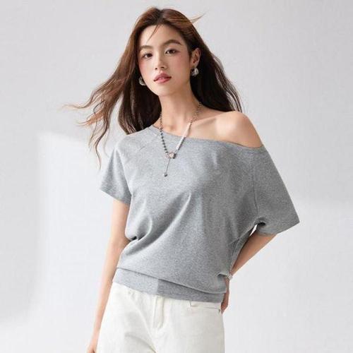 [에이치플러스몰]보트넥티셔츠 슬림핏티셔츠 오프숄더 여름상의 R