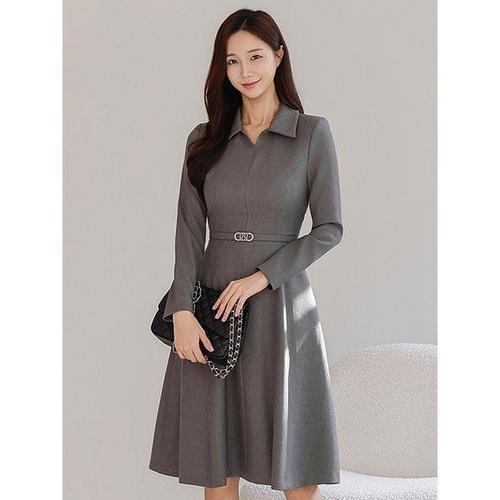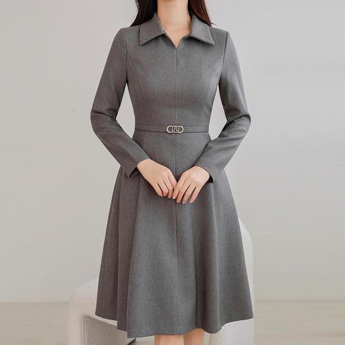 [드리다]카라 A라인 플레어 빅사이즈 벨트 정장 원피스 하객 모임 오피스룩 상견례 가을 겨울