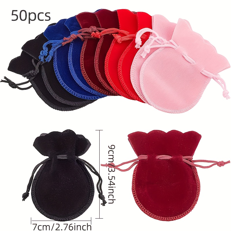 TEMU 50pcs 소프트 벨벳 드로스트링 선물 가방 - 실크 리본 타이로 다양한 색상, 보석, 목걸이, 결혼식, 생일, 크리스마스 파티 선물, 보석 선물 가방|세련된 디자인|부드러운 텍스처, 보석 포켓