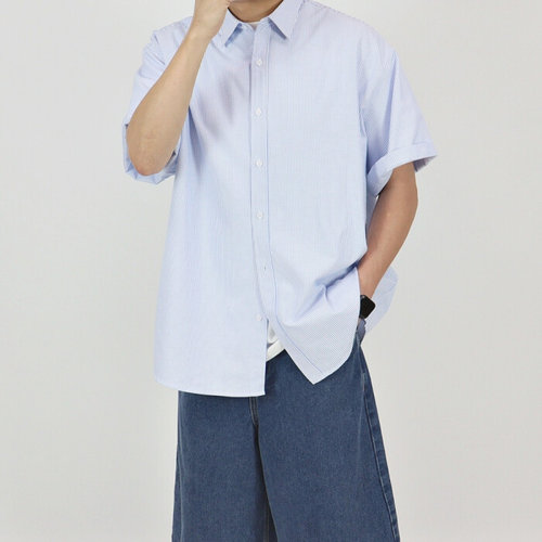 [BZJKUIPF_4B]오버핏 옥스포드 남자 정장셔츠 반팔셔츠