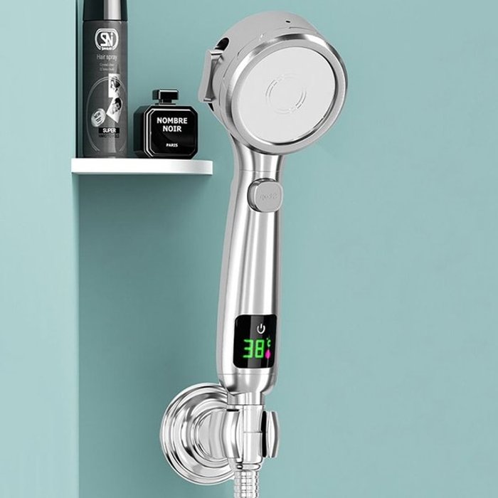 ZOZOFO LCD 디스플레이 온도 샤워기 수압상승 욕실청소 온도체크 샤워노즐 + 1.5m 호스