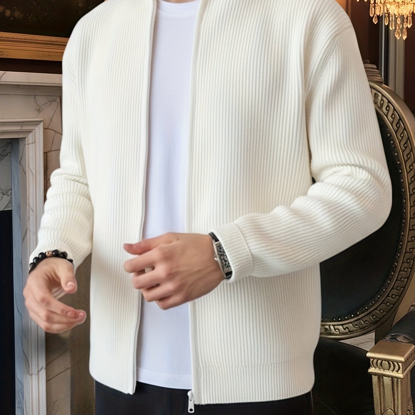 TEMU 남성 패션 니트웨어, 가을/겨울 캐주얼 텍스처 자카드 밀가루 원단, 대비 스티칭 라운드넥 지퍼 포켓 스웨터