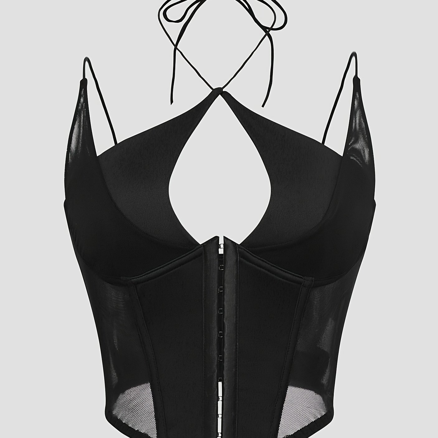 TEMU 섹시한 딥브이넥 홀터넥 단색 앞단추 메쉬 시스루 오픈백 슬링 코르셋 탑
