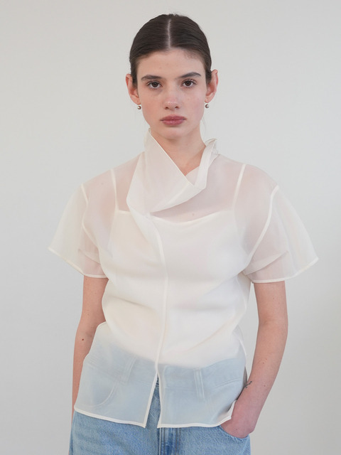 [온앤온] 하이넥 시스루 블라우스 NEW6MB327_2color