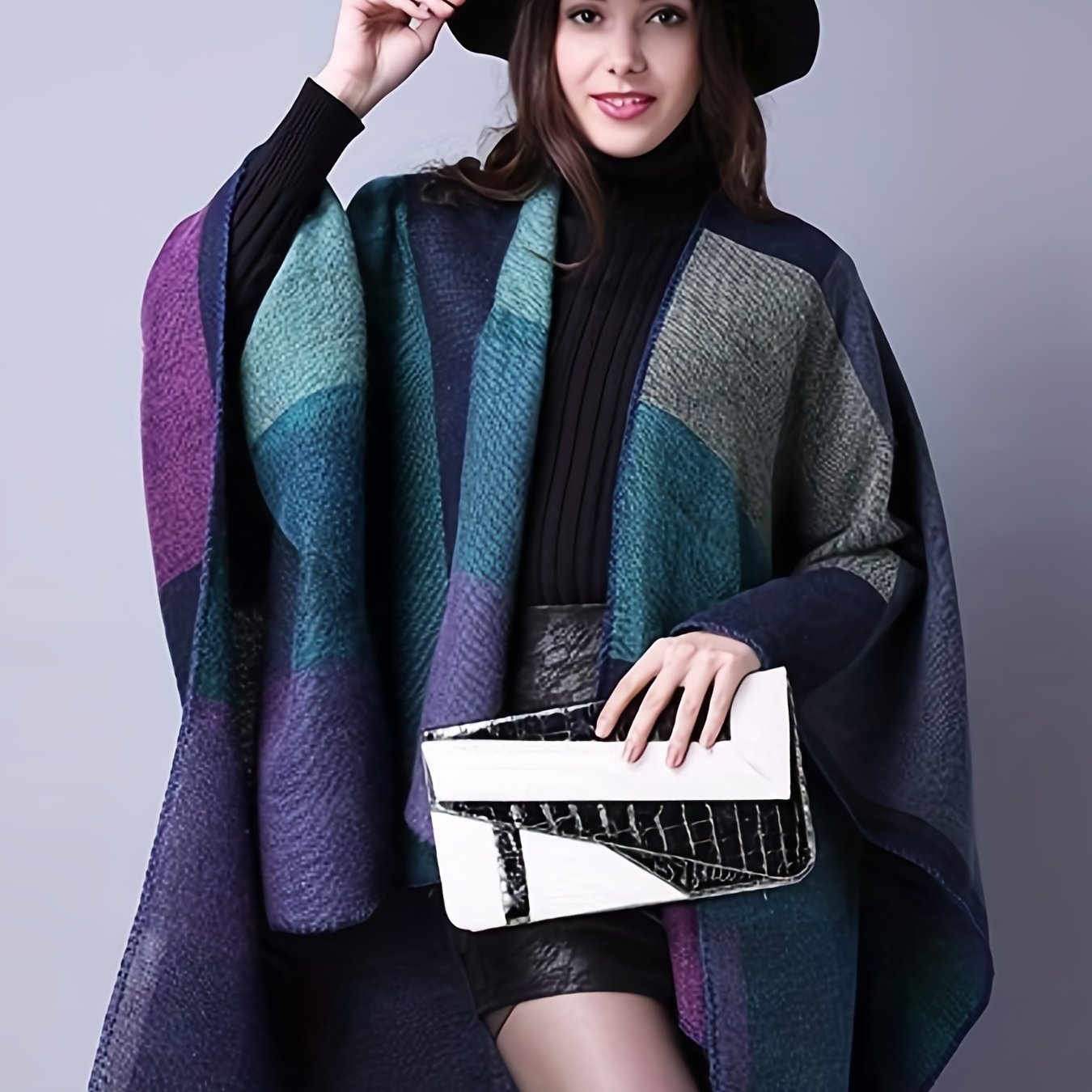 TEMU 플러스 사이즈 - 플러스 사이즈 - 플러스 사이즈 패셔너블 영국 레트로 귀족 체크 무늬 숄, 두꺼운 따뜻한 여성용 케이프 코트