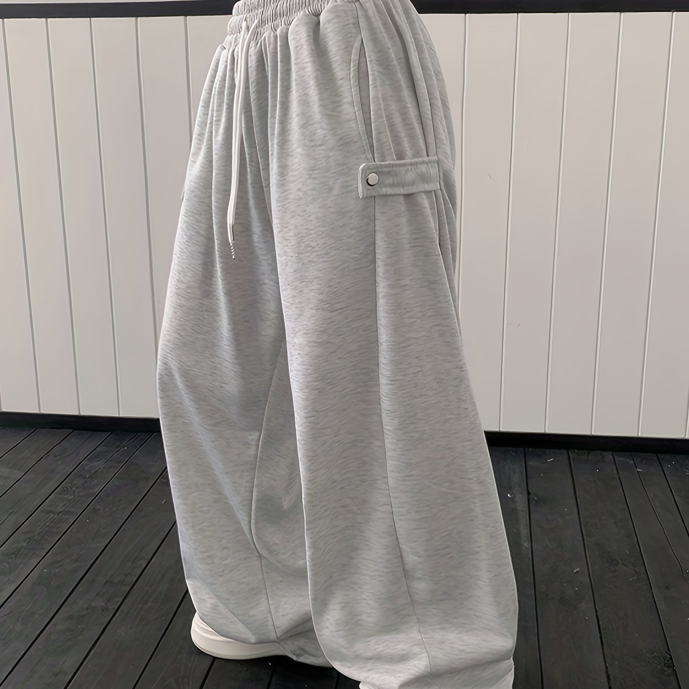 TEMU 한국 스타일 오버사이즈 카고 팬츠, 탄력 있는 허리 & 사선 버튼 클로저 - 와이드 레그 작업복 바지, 가을/봄용 포켓, 캐주얼 또는 프로페셔널 착용 (단색)