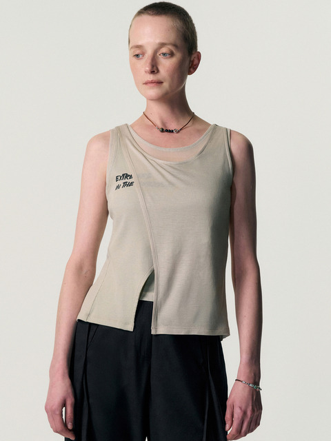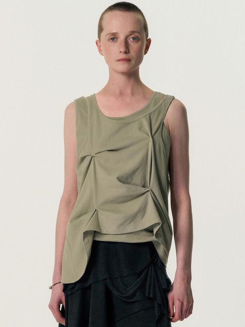 [킴지수] 오버레이 커브 탱크 탑_올리브 그린