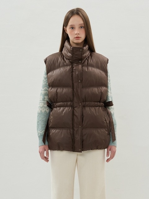 [올리브데올리브] 옆리본 하이넥 웰론 패딩 조끼 OP5WVA920