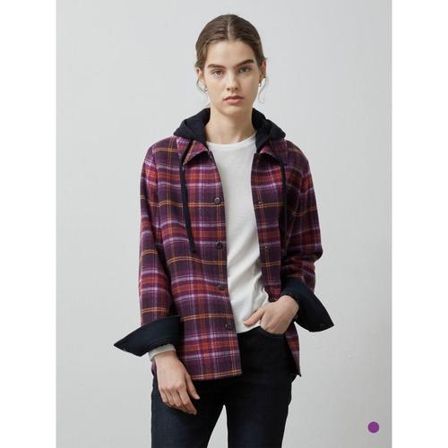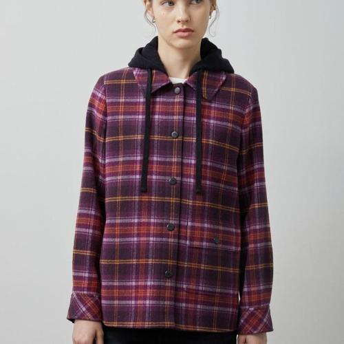 [올리비아로렌]배색 후드 체크 블라우스__VVBNL3W9361