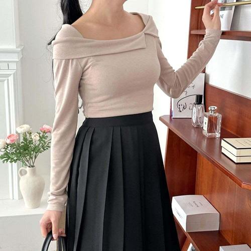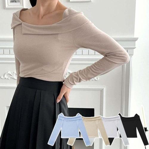[셀럽하우스]여성 FAIM2344 4컬러 엘리스 하찌 오프숄더 스판 긴팔티셔츠