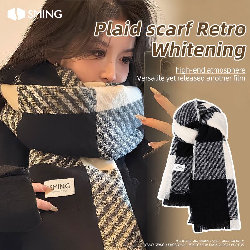 TEMU 1개, 성명 체크무늬 스카프 여성용, 2025 신상 고퀄리티 디자인, 다용도 겨울용 두꺼운 보온 방풍 스카프, 크리스마스 선물 추천