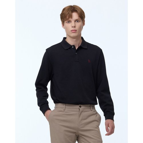 [헤지스] 남성 스트라이프 카라 긴팔티셔츠 HZTS6A204BK