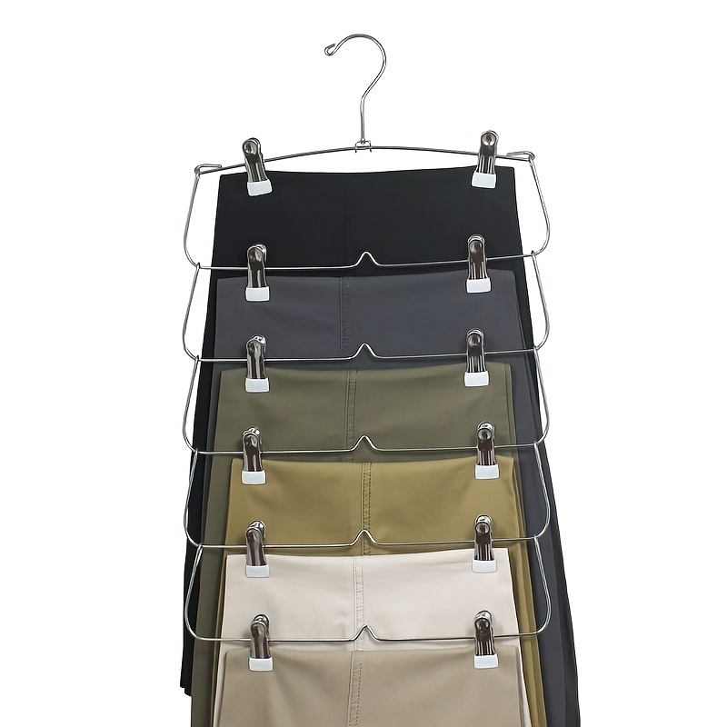 TEMU 6단 스테인리스 접이식 바지 걸이 - 옷장 및 클로셋용 공간 절약형 다층 의류 정리대, 청바지, 스커트 등 보관 가능, 광택 마감, 의류 정리 수납|바지걸이