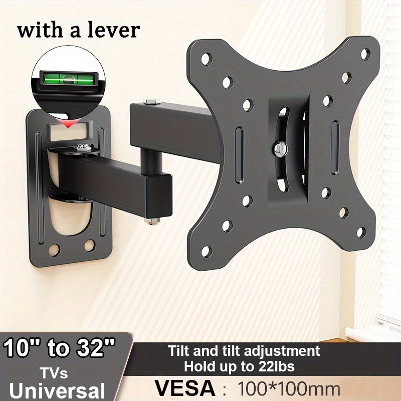TEMU 1개 초박형 고정 TV 마운트, 벽걸이 TV 브래킷 - 설치가 쉽고, 15° 기울기 조절 가능, 최대 하중 22파운드, 10-32인치 디스플레이에 적합, 최대 VESA 100X100mm, 기울기 기능, 안전한 조절 가능한 걸이 브래킷, TV 벽 지지대, TV 랙, TV용 플로팅 가구, TV 벽 마운트 브래킷, TV 가구, TV 벽용 브래킷