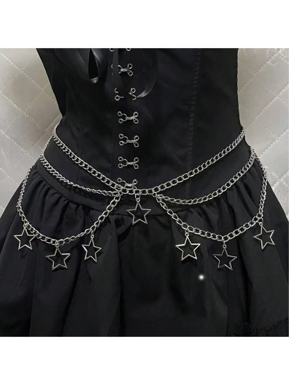 UYEE 다리 스트랩 가터 벨트 오각형 허벅지 하네스 여자 여자 고스 코스프레 액세서리 하라주쿠 Egirl 쥬얼리