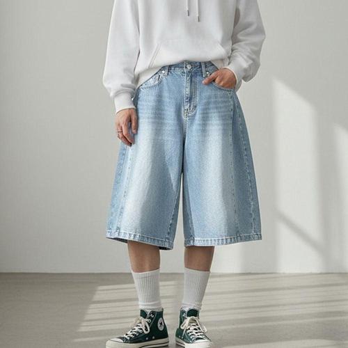 [김영주골프]여름 트렌디한 와이드핏 버뮤다 데님 남성 7부 청반바지 DPMMHS05